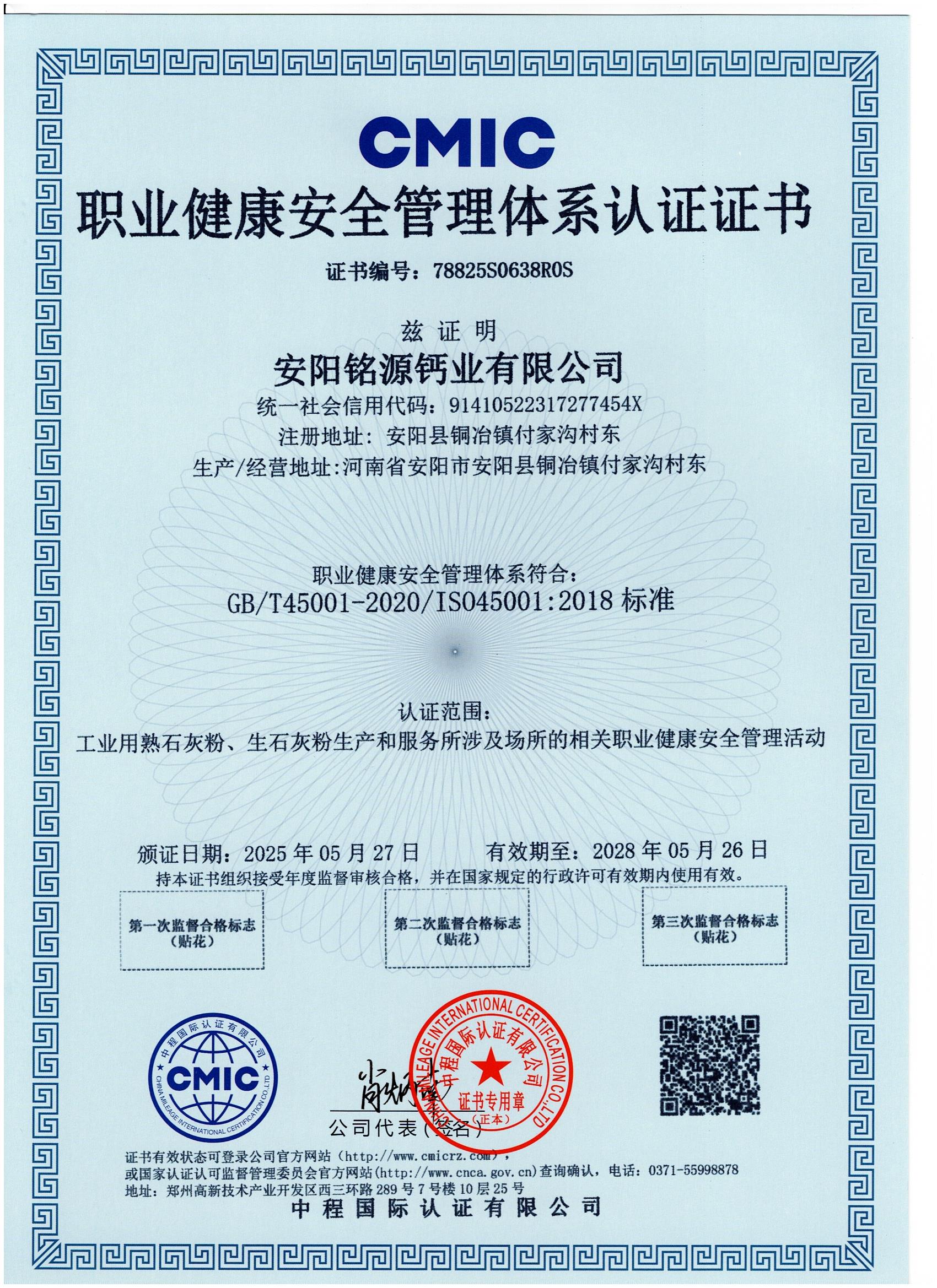 職業(yè)健康安全管理體系認(rèn)證證書